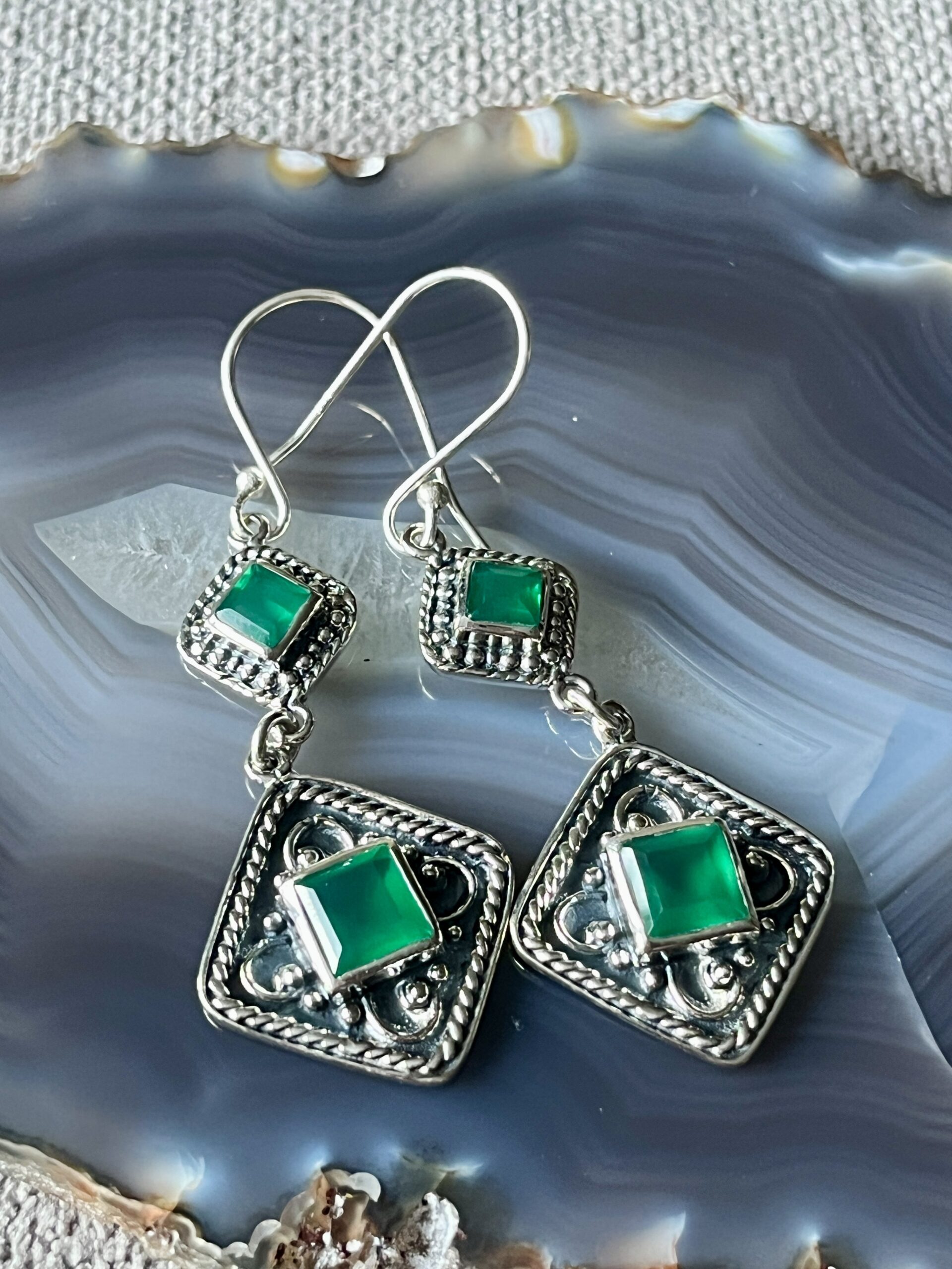925 Hõbe kõrvarõngad rohelise oonüksiga 55mm kogus