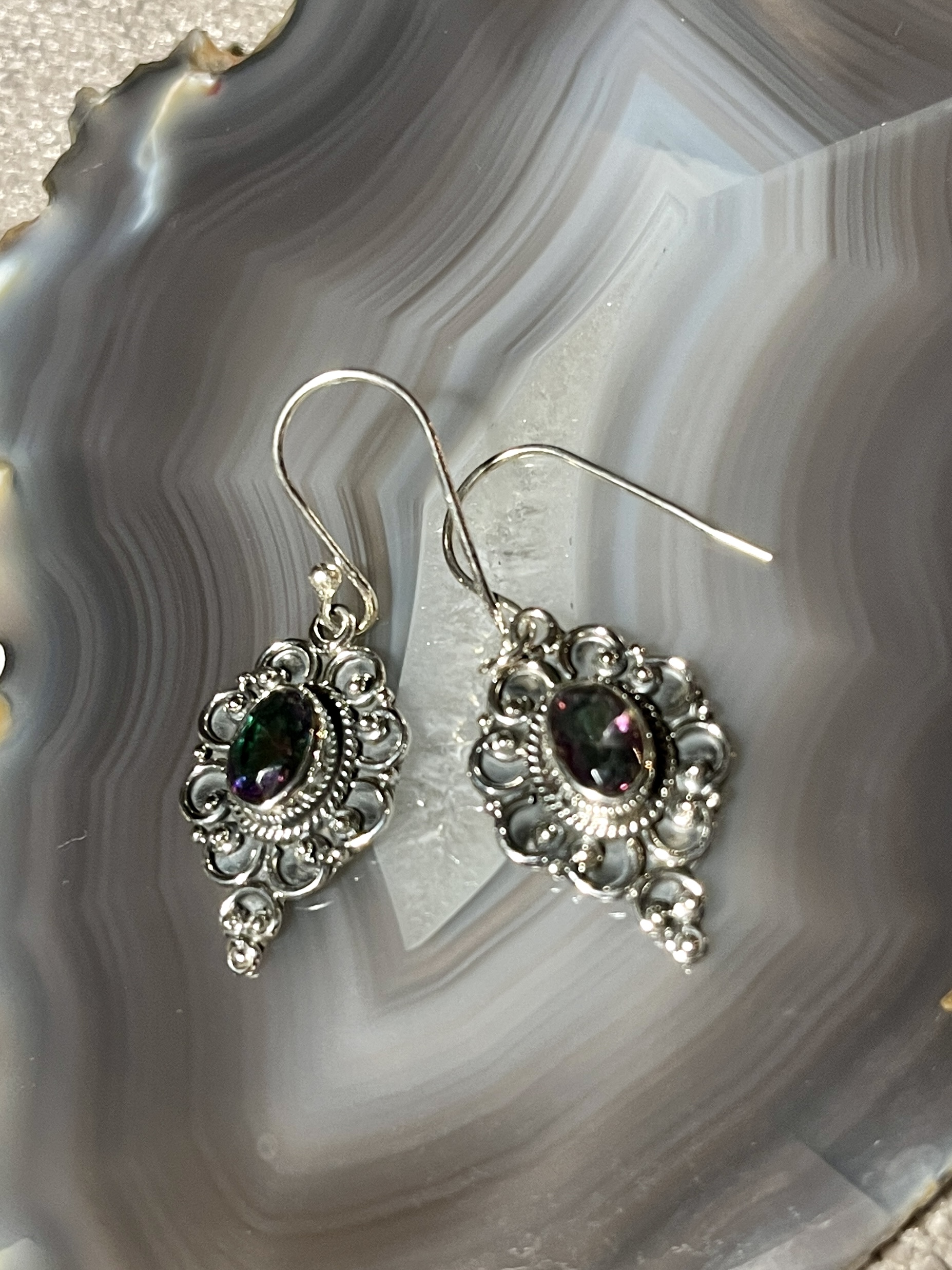 925 hõbedast kõrvarõngad müstilise vikerkaare topaasiga,kristall 8mm,ripatsi osa 22mm