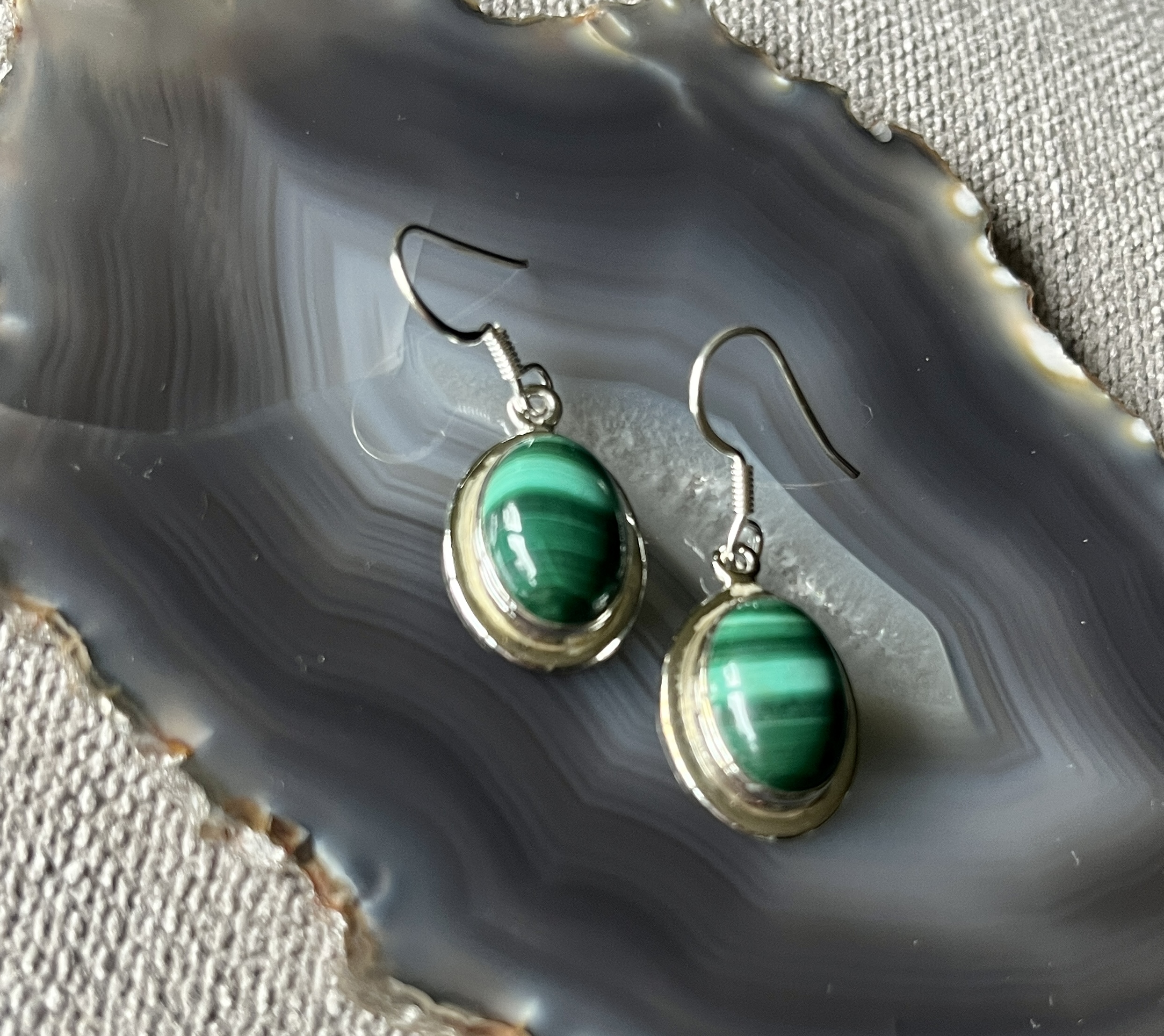 925 Hõbedast kõrvrõngad India malahhiidiga,ripatsi osa 16mm