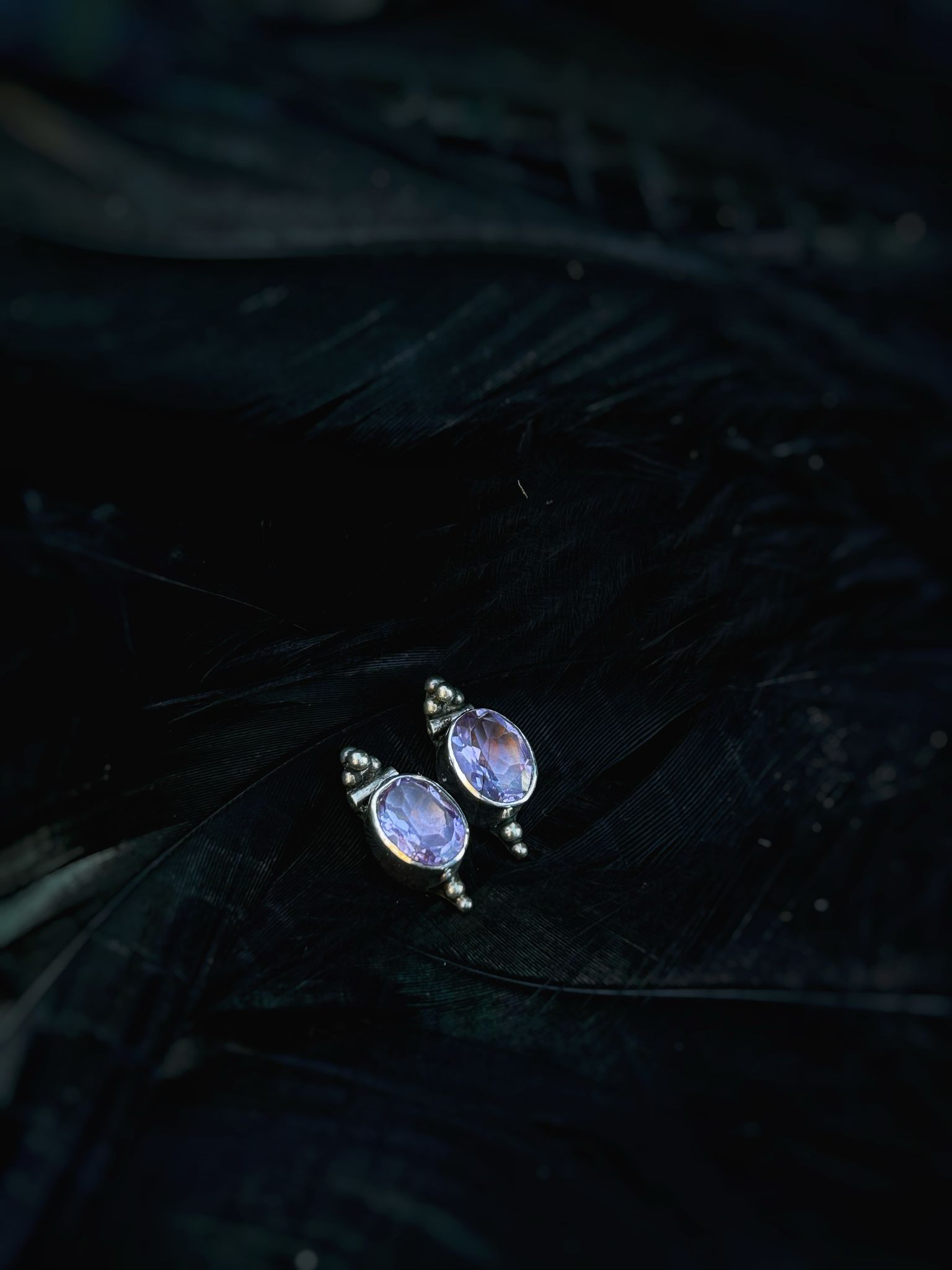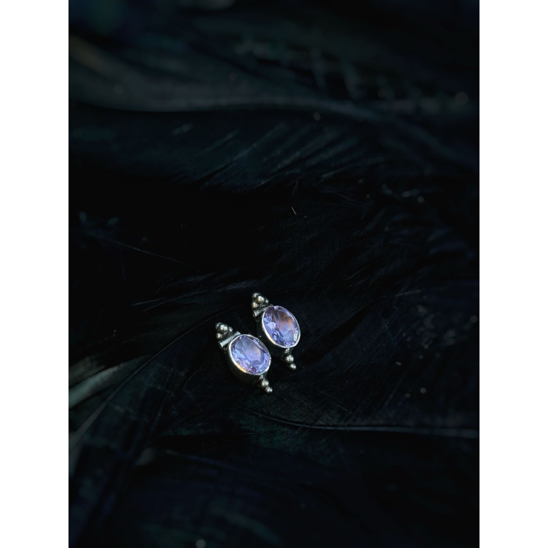 925 Hõbedast poltkõrvarõngad ametüstiga,kristall 8mm
