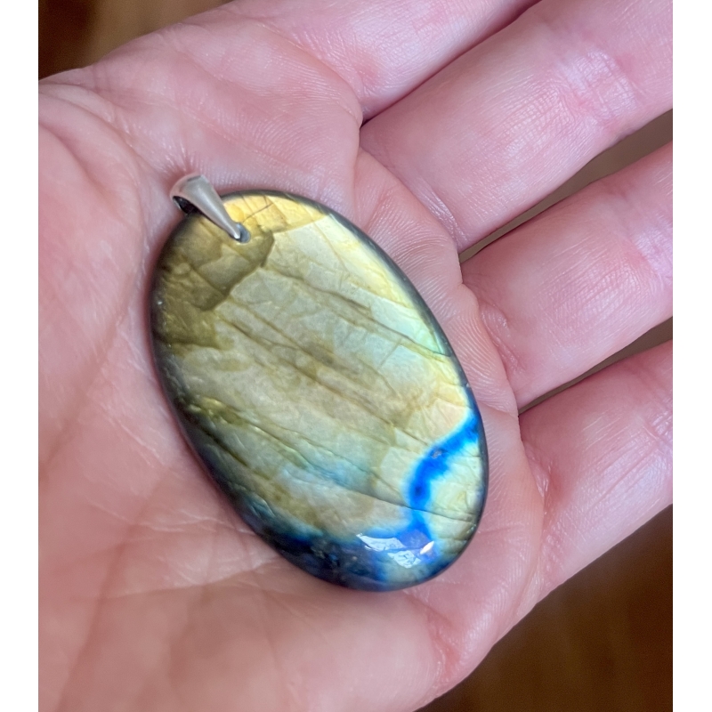 925 Hõbehaagiga India suur spektroliitlabradoriidi ripats 45mm,A kategooria kristall