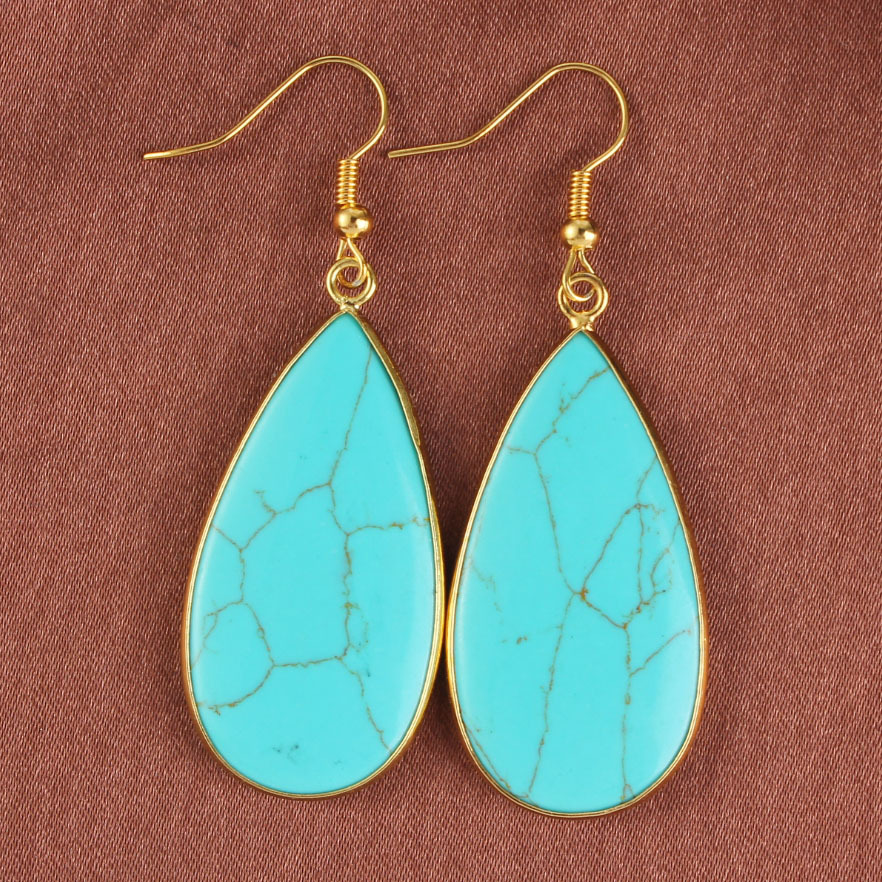 Kullatud kõrvarõngad sünteetilise türkiisiga 55x21mm,1paar kogus
