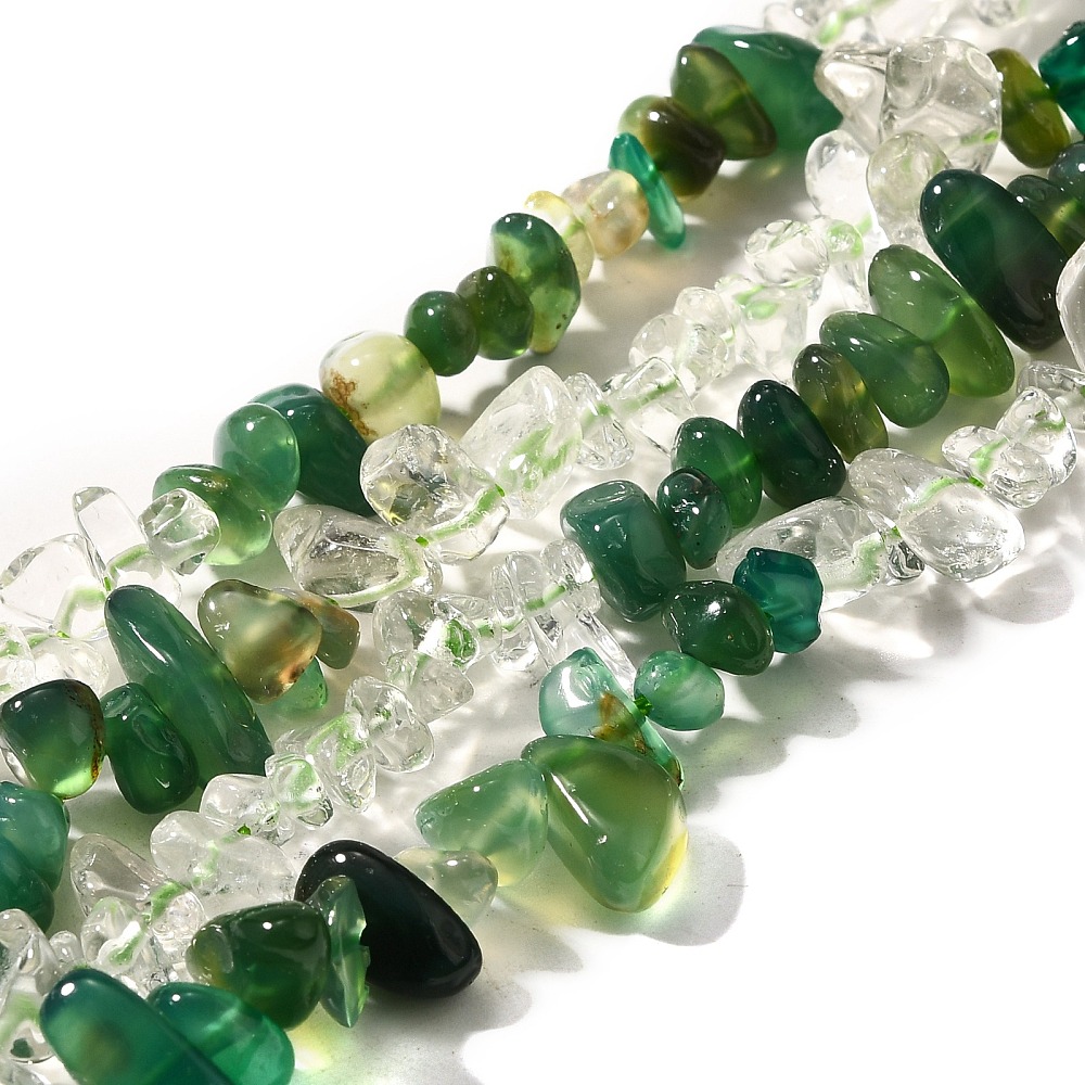 Looduslik mäekristalli ja krüsopraasi helmed 5-10mm,toorik 40cm avaga 0,8mm