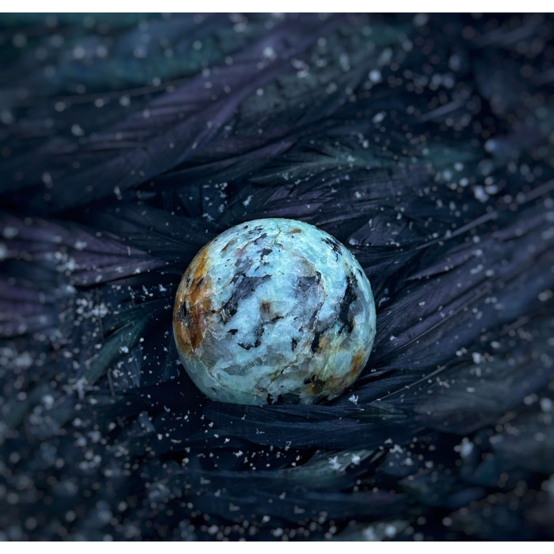 Loodusliku krüskollaga kuul. Mõõtudega 6,5cm ja kaaluga 378g.