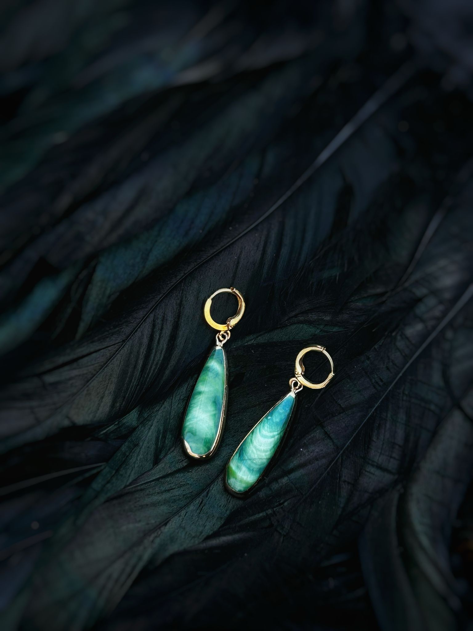 Tugevkullatud haagiga rohelise helkiva teokarbiga kõrvarõngad,kristall 30mm kogus
